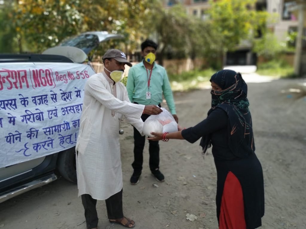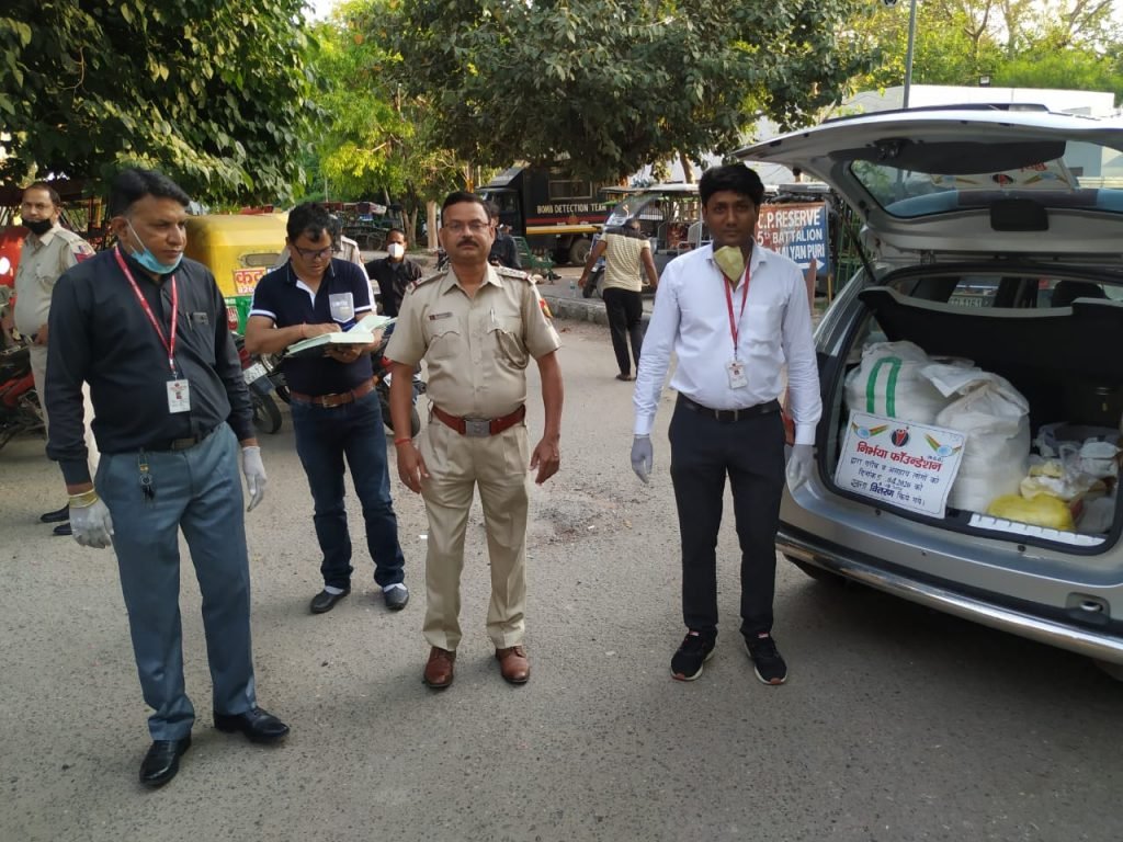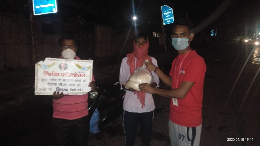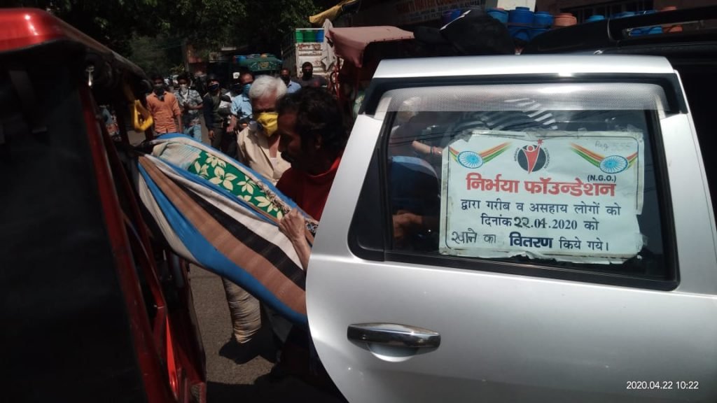 11.04.2020 निर्भया फाउंन्डेशन के द्वारा फर्श बाजार थाने की सूचना पर खाने की सामग्री का वितरण किया गया।