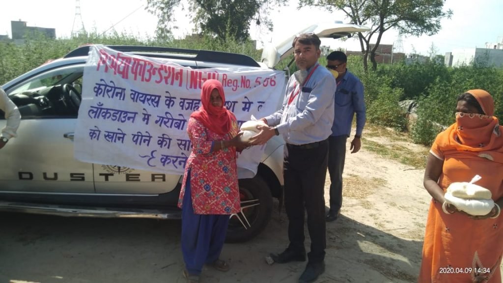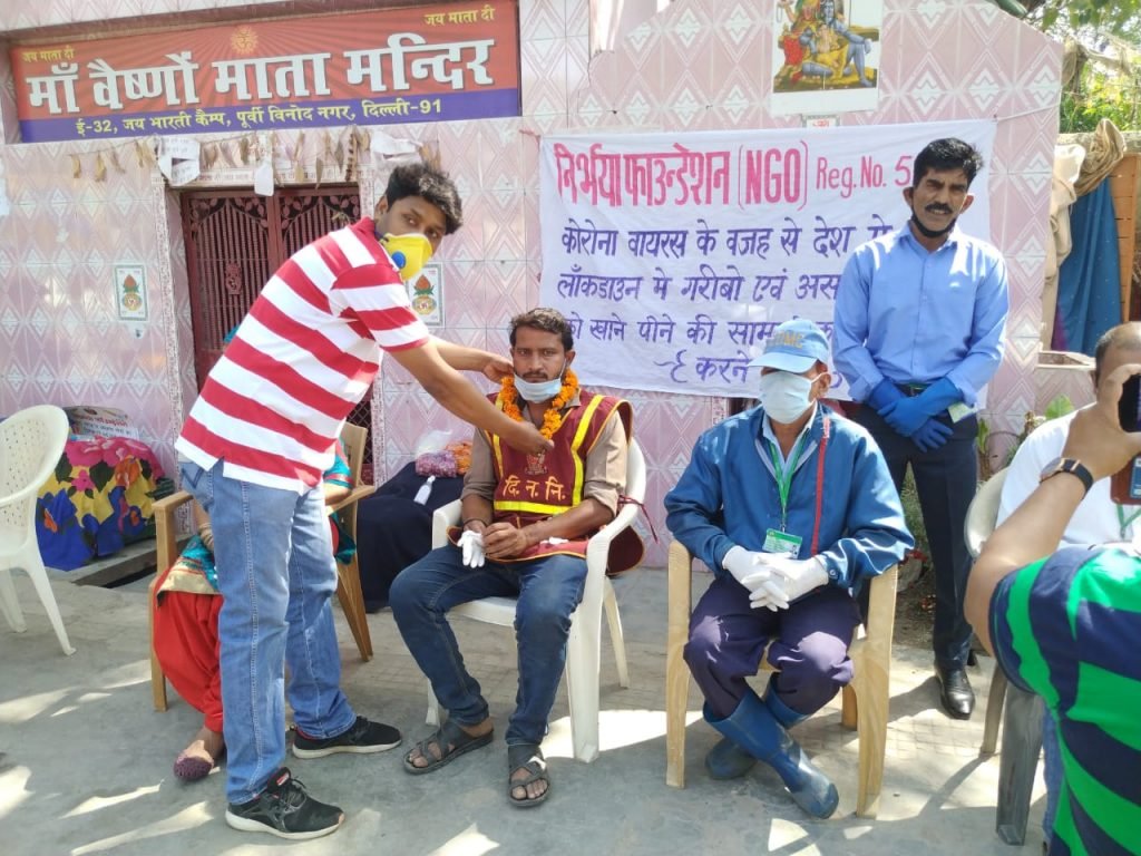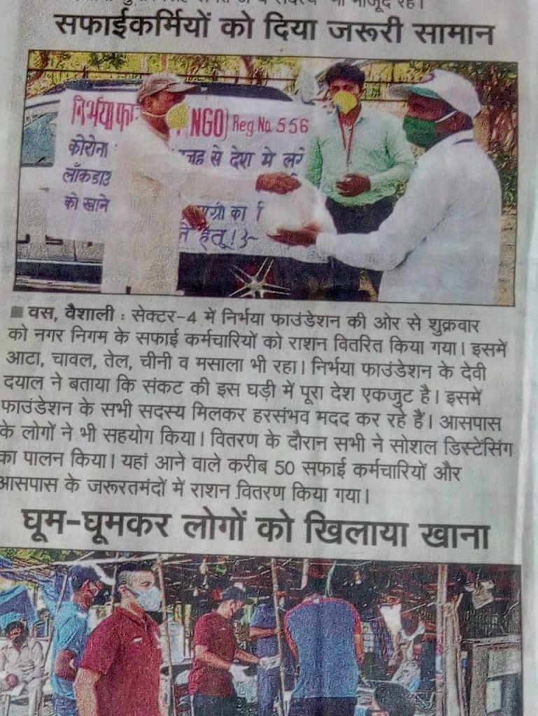 28-04-2020 निर्भया फाउंन्डेशन के द्वारा वसुंधरा सेक्टर-4, गाजियाबाद मे कुछ प्रतिदिन दिहाड़ी, मजदूरी करने वाले लोगों को खाने की सामग्री का वितरण किया गया।