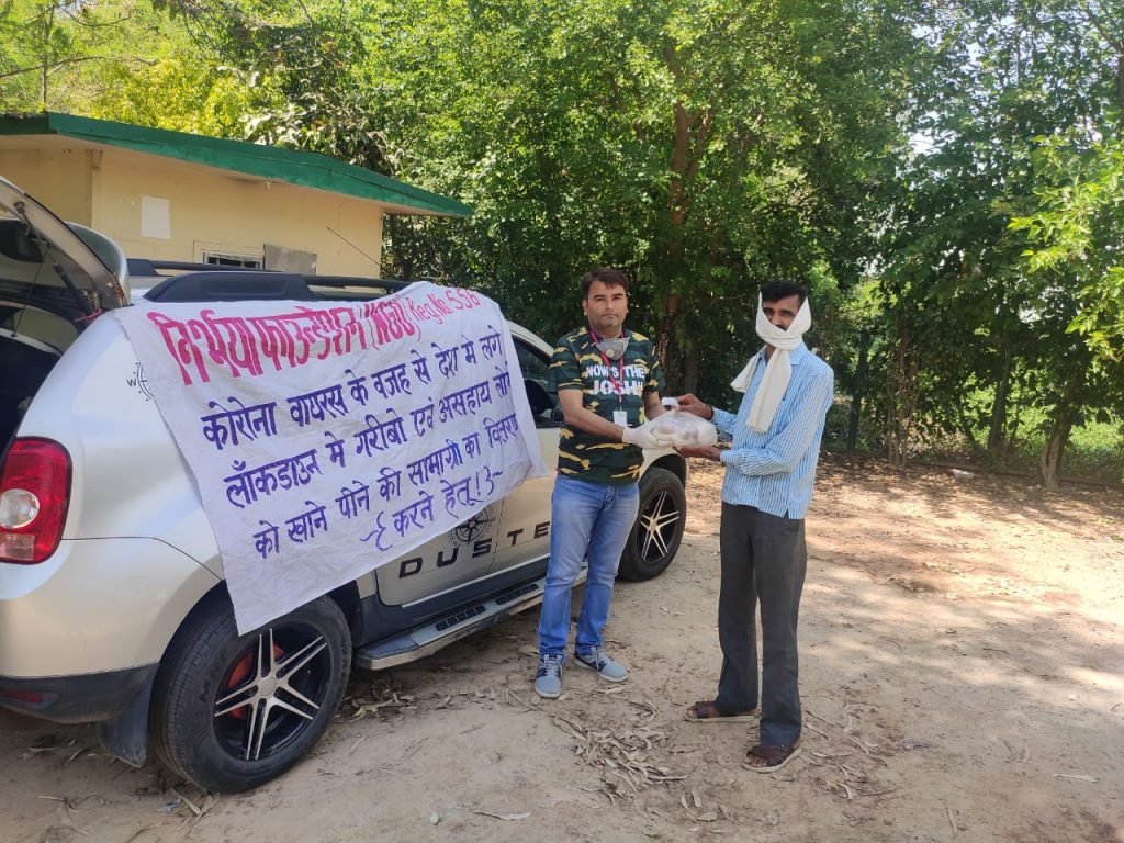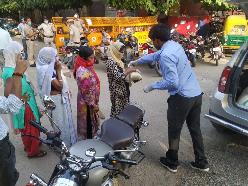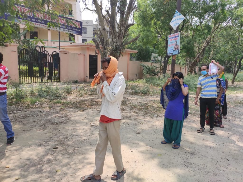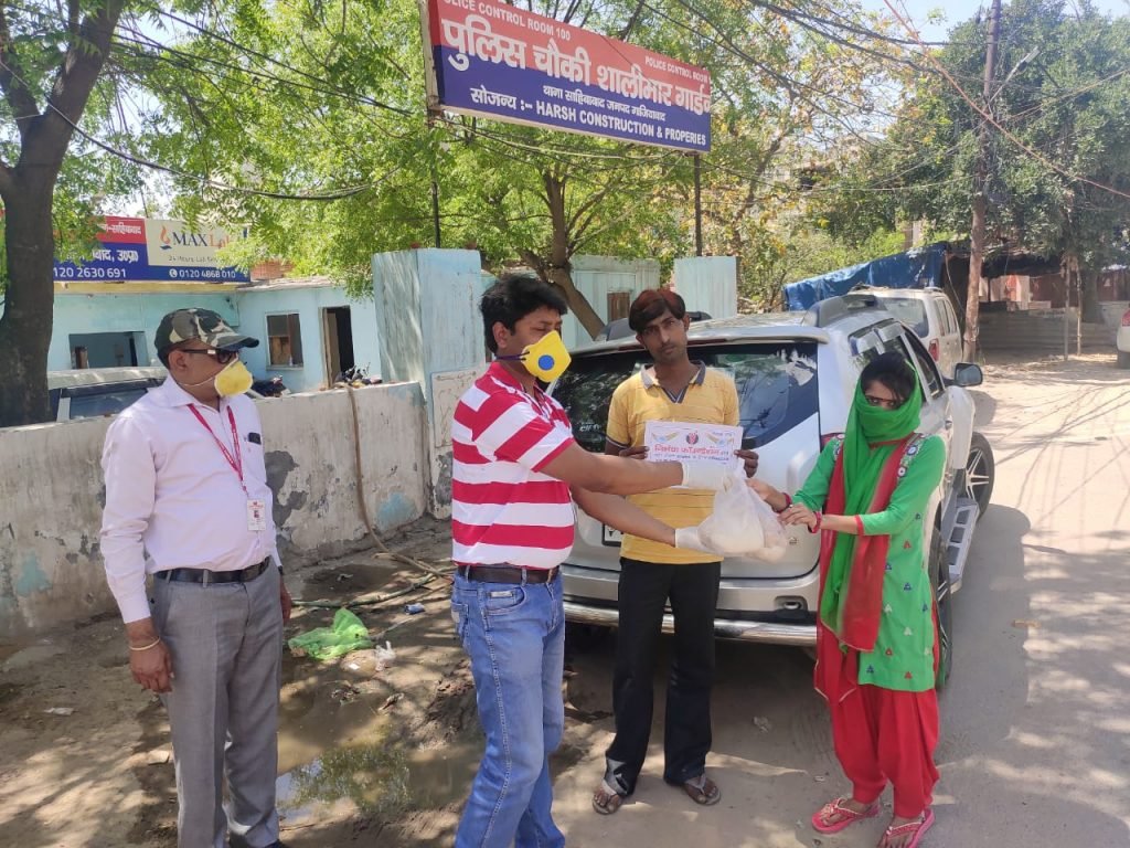 27-04-2020 निर्भया फाउंन्डेशन के द्वारा थाना साहिबाबाद की सूचना पर साहिबाबाद थाने पर कुछ प्रतिदिन दिहाड़ी, मजदूरी करने वाले लोगों को खाने की सामग्री का वितरण किया गया।