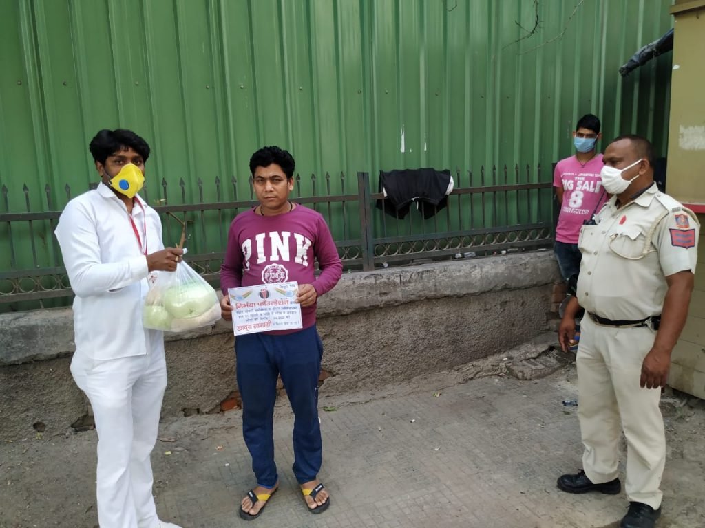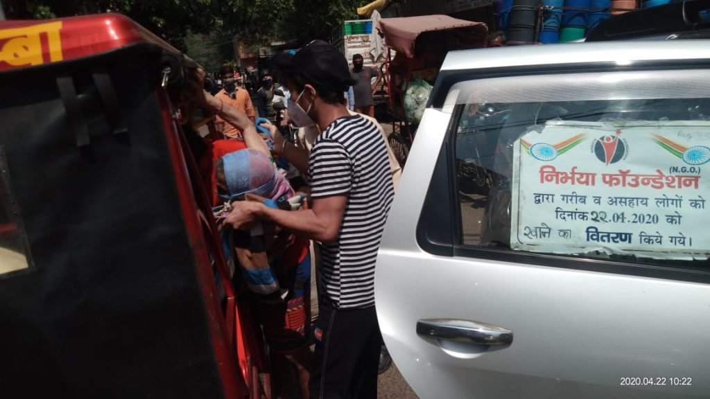 17-4-2020 निर्भया फाउंन्डेशन के द्वारा पांडव नगर थाने की सूचना पर कुछ रिक्शा चलाने वालो को व फुटपाथ पर रहने वाले लोगों को खाने की सामग्री का वितरण किया गया।