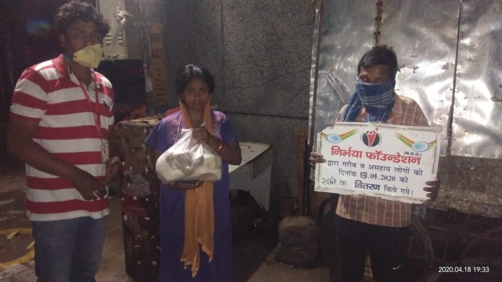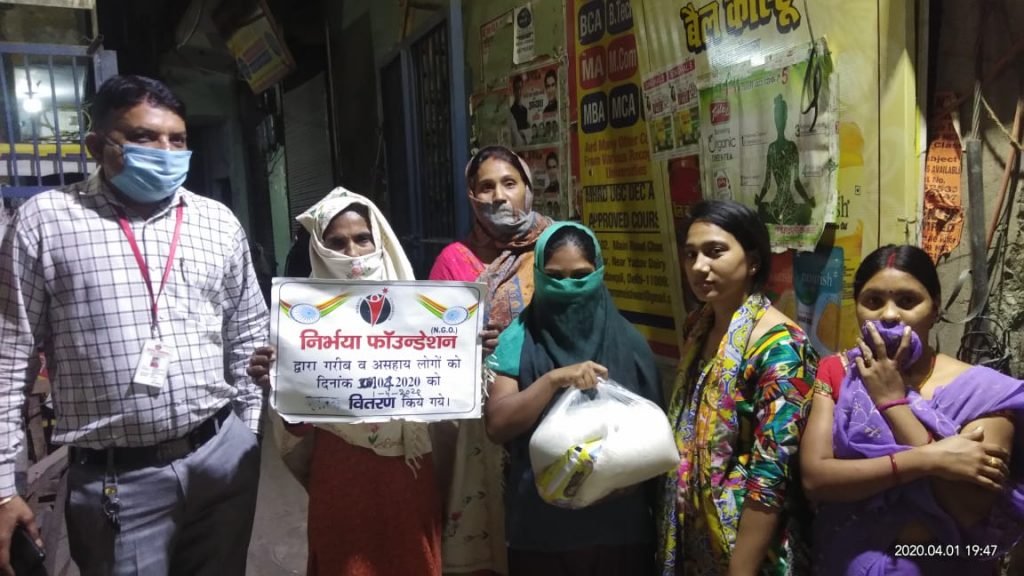 01.04.2020 निर्भया फाउंन्डेशन द्वारा मंडावली दिल्ली में रहने वाले कुछ गरीब परिवारों को खाने की सामग्री दी गई।