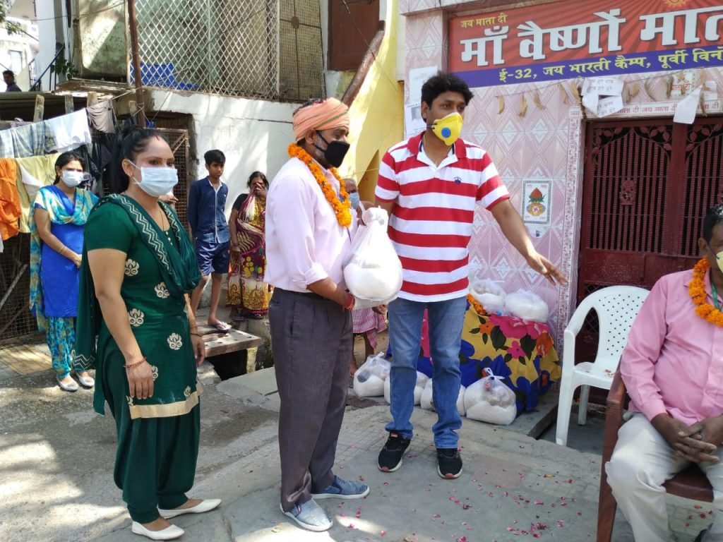 29-04-2020 निर्भया फाउंन्डेशन द्वारा कृष्णा नगर, दिल्ली में कुछ प्रतिदिन दिहाड़ी, मजदूरी करने वाले लोगों को खाने की सामग्री का वितरण किया गया।