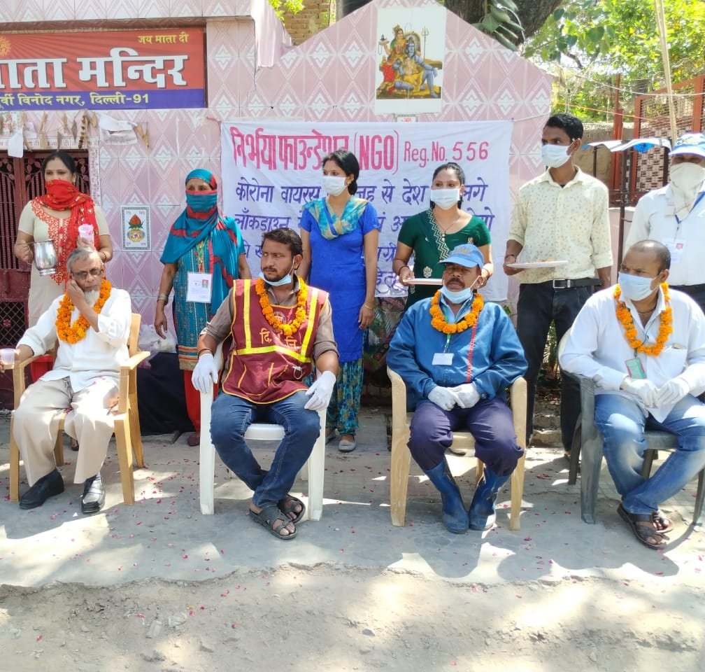 13.04.2020 निर्भया फाउंन्डेशन के द्वारा देश में चल रहे क्रोना महामारी को देखते हुए हमारे, पूर्वी दिल्ली, नगर निगम के सफाई कर्मचारी अपनी जान मान व परिवार की परवाह न करते हुए अपनी जिम्मेदारी निभाते हुए दिल्ली की जनता की सेवा में लगे हुए हैं। इन सभी की इस सेवा को देखते हुए निर्भया फाउंन्डेशन की तरफ से सभी सफाई कर्मचारियों का सम्मान किया गया। ईस्ट विनोद नगर दिल्ली 110091, मे निर्भया फाउंडेशन की तरफ से इन सभी दिल्ली के सफाई कर्मचारियों का तहे दिल से धन्यवाद करते हैं।