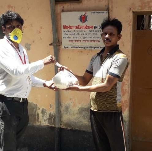 10.04.2020 निर्भया फाउंन्डेशन के द्वारा सेक्टर - 4, वैशाली में कुछ दिहाड़ी मज़दूरों को खाने की सामग्री का वितरण किया गया।