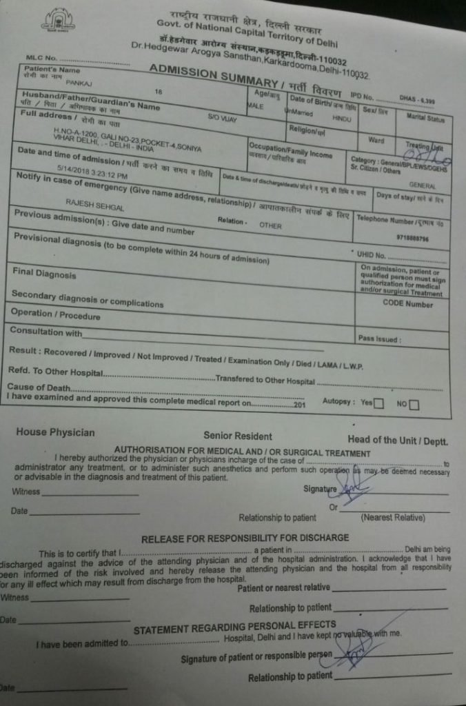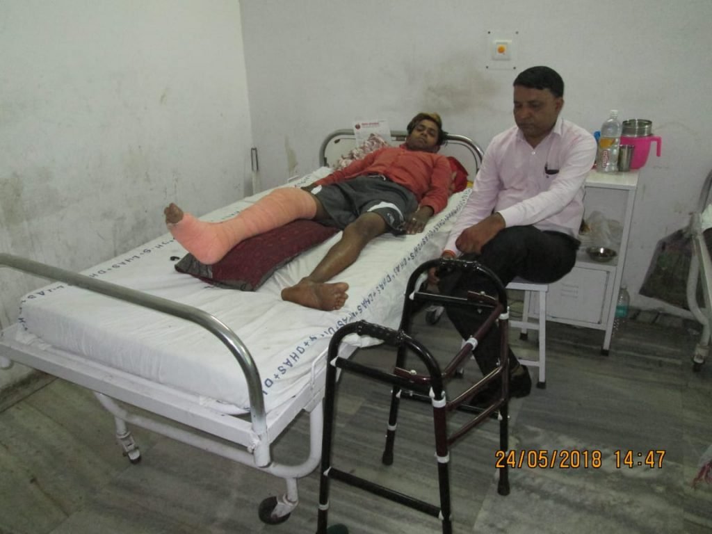 सड़क दुर्घटना में पीड़ित व्यक्ति (पंकज) का इलाज करवाया।