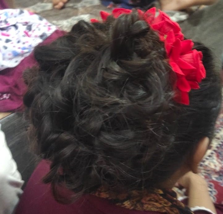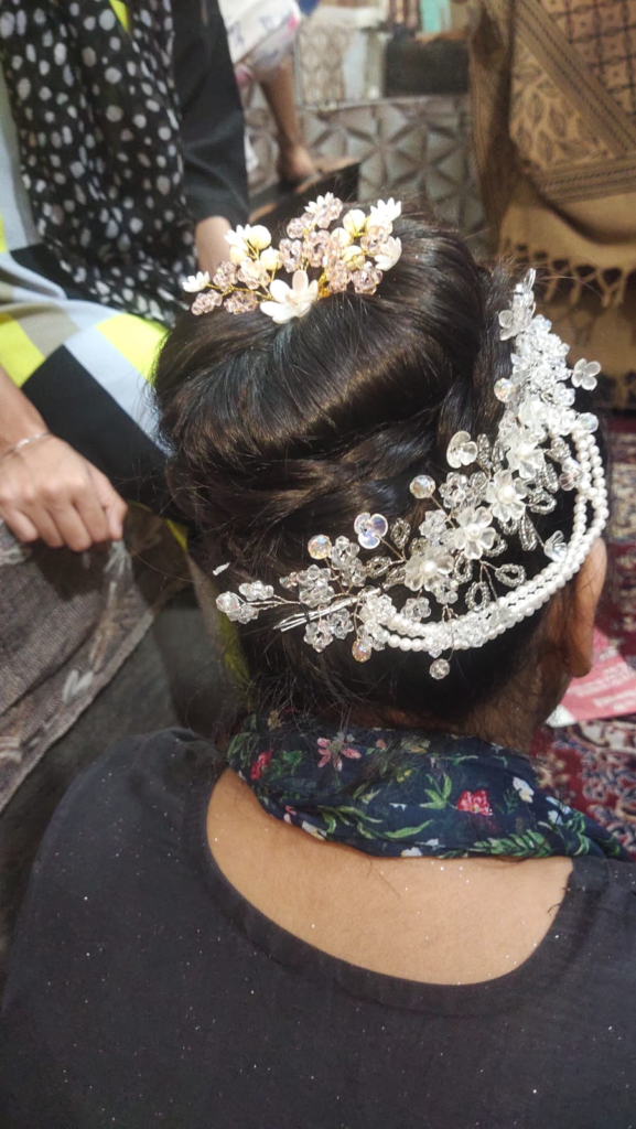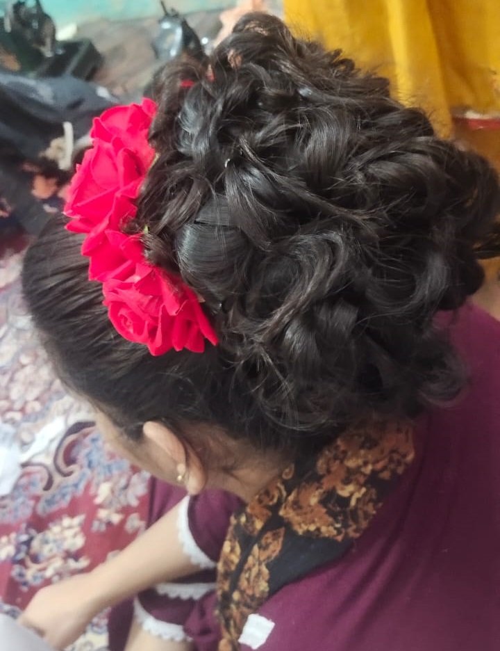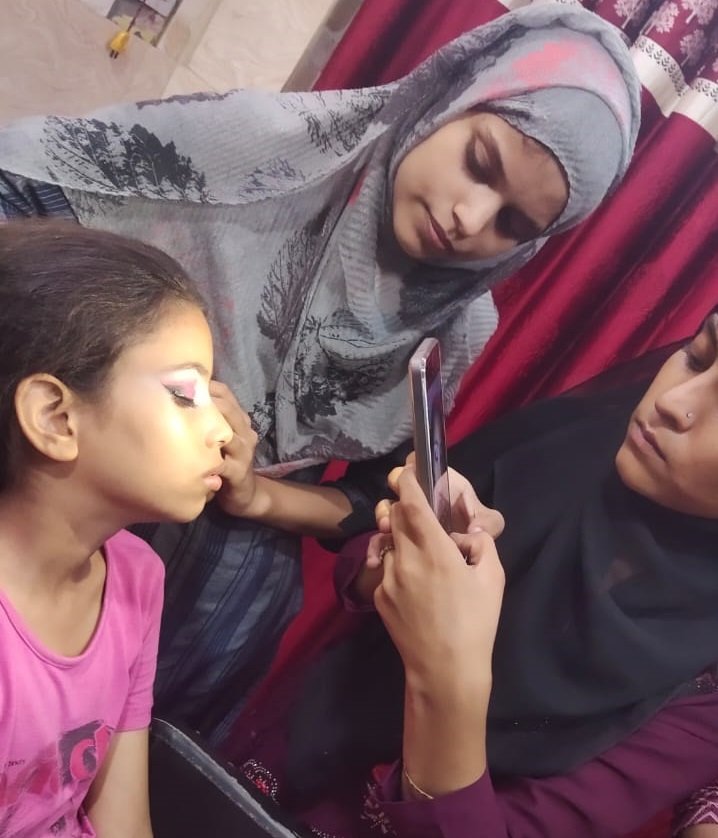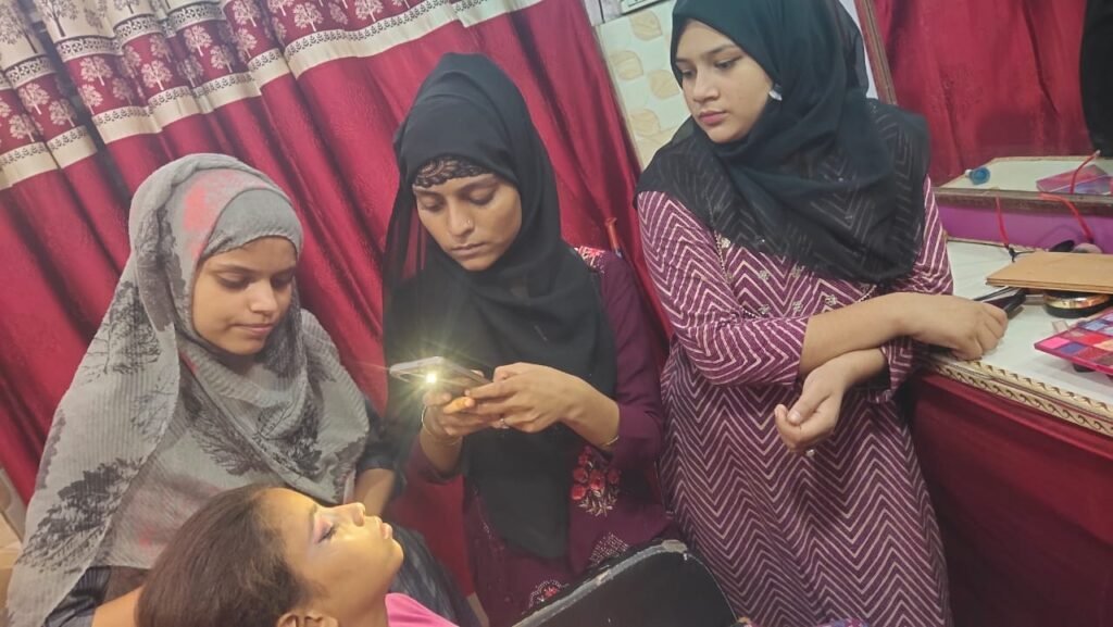 11.08.2024 निर्भया फाउंडेशन की मुस्तफाबाद ब्रांच में कुछ छात्राएं ब्यूटी पार्लर का प्रशिक्षण लेते हुए।