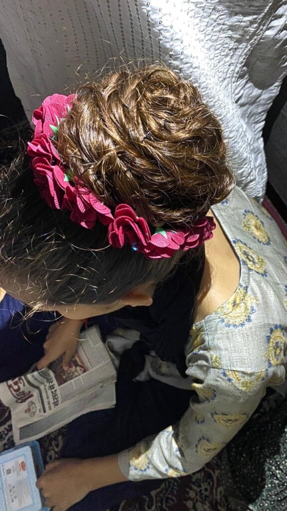 16.08.2024 निर्भया फाउंडेशन की मुस्तफाबाद ब्रांच में तमन्ना सैफई छात्राओं को beautician का काम सिखाते हुए।